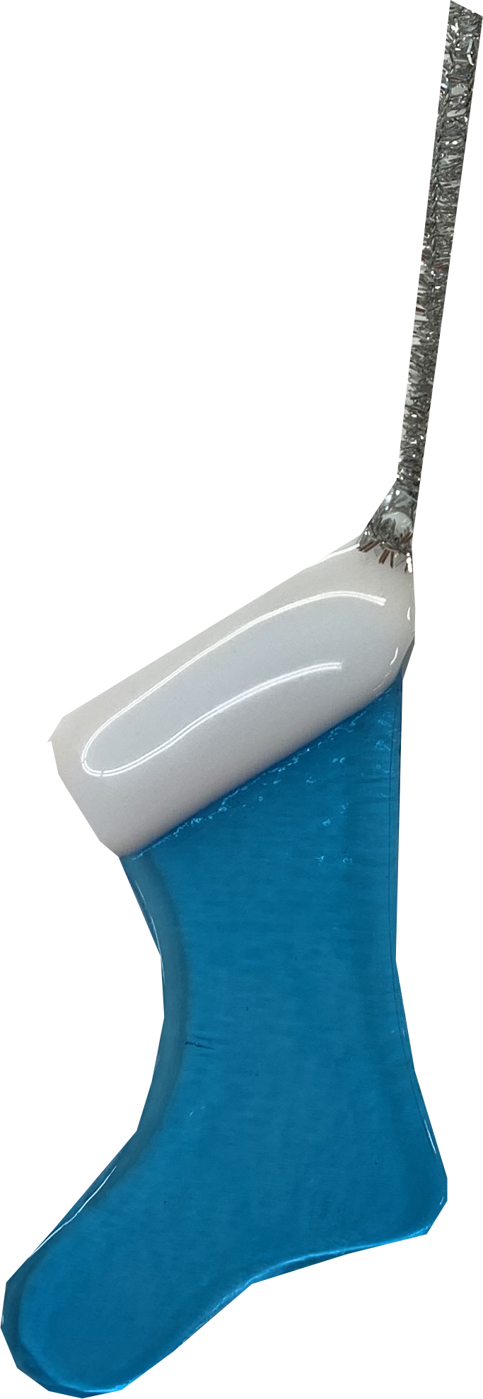 Small, Aqua with White Trim Stocking Ornament with silver hanger